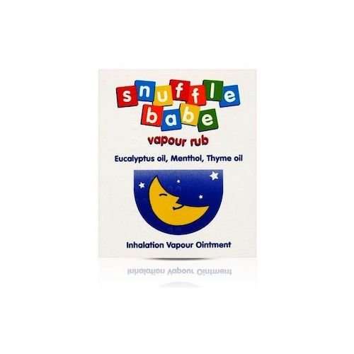 Snufflebabe® Vapour Rub is an effective and mild decongestant containing a gentle blend of Eucalyptus Oil, Menthol and Thyme Oil.