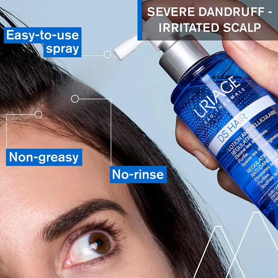 Apply the Uriage DS HAIR Regulating Anti-Dandruff Lotion spray to a dry or damp scalp, part by part. Use twice a day during an active dandruff flare-up and once a day as prevention. Do not rinse.
